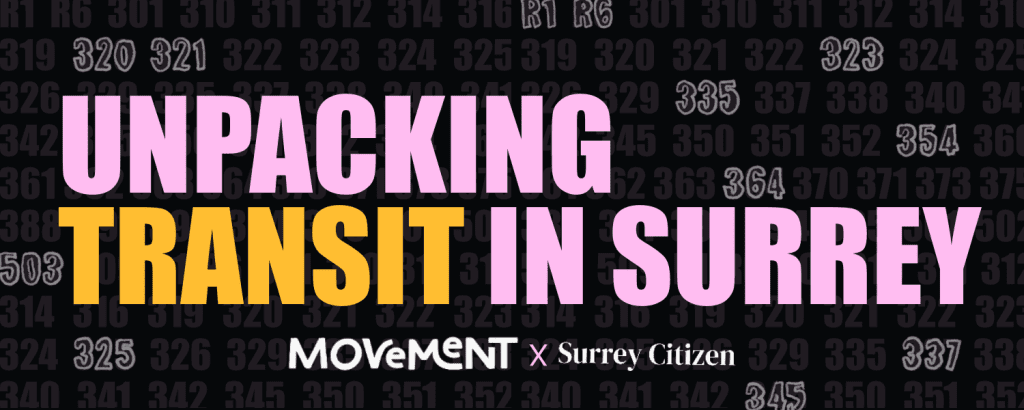 We’ll start with a short presentation from Movement, setting the stage with an overview of the current state of transit in Surrey and the needs of transit riders. From there, we’ll move into a panel discussion where panellists will respond to recordings of transit riders across Metro Vancouver sharing challenges they experience on their commutes, such as overcrowding, lack of late-night service, unreliable service, and safety concerns.